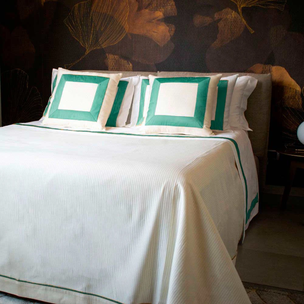 COPRILETTO SINFONIA 100% COTONE CON APPLICAZIONE BORDO IN PERCALLE EXTRA FINE TC200 FINITURA OPACA