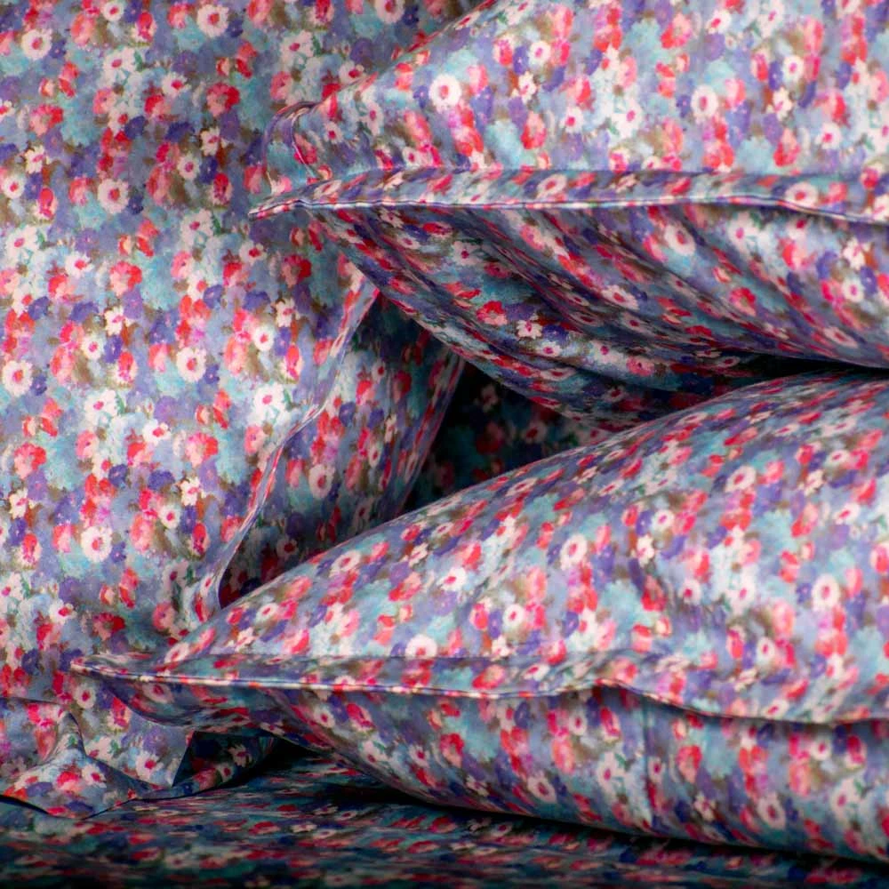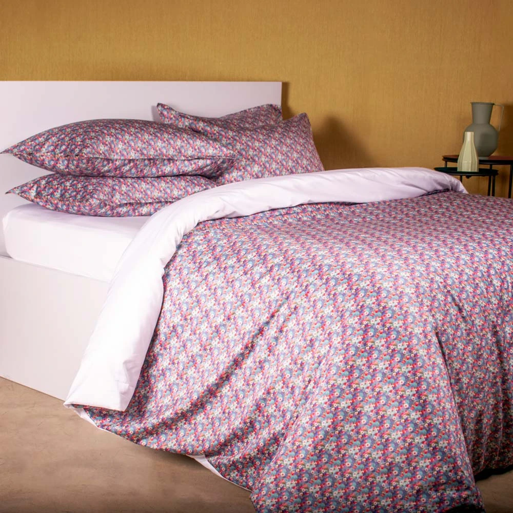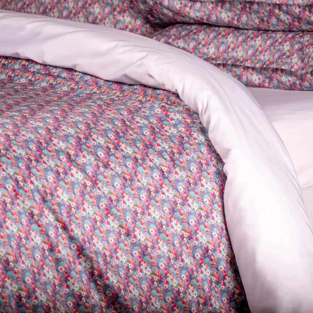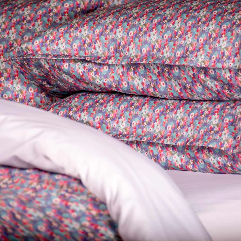 I Copripiumini Ninfea si distinguono per la loro incantevole fantasia floreale, come quella minuta e multicolore che si vede nell'immagine. Un'esplosione di piccoli petali e colori vivaci dal rosa al fucsia, dal blu al celeste, con tocchi di bianco e viola, si intreccia per creare un pattern vibrante ma allo stesso tempo delicato, evocando un prato fiorito o uno specchio d'acqua punteggiato di ninfee. Ogni set è realizzato con il più fine Raso di puro cotone, scelto per la sua incredibile morbidezza, la sua leggerezza e la sua straordinaria traspirabilità. La sensazione sulla pelle è un'autentica carezza, perfetta per favorire un sonno profondo e ristoratore in ogni stagione.