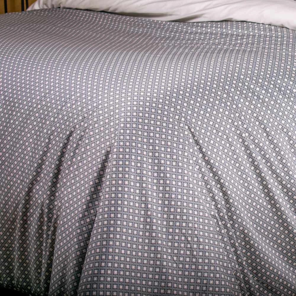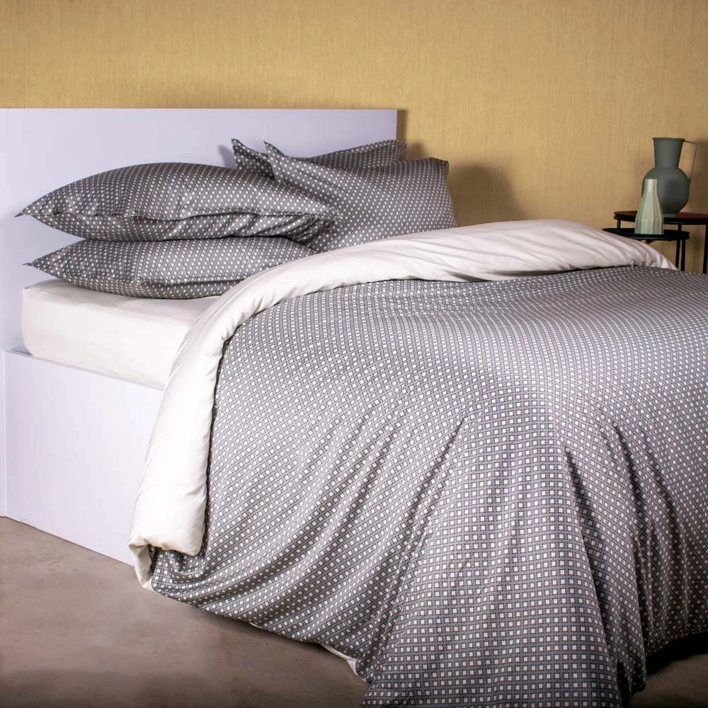 I Copripiumini Zellige sono un inno alla geometria e alla precisione artistica. Il loro pattern distintivo, come quello visibile nell'immagine con le sue forme concatenate e ripetute in tonalità neutre di grigio, beige e crema, evoca la complessità e l'eleganza dei mosaici marocchini. Questo design sofisticato crea un'atmosfera di calma e armonia, trasformando il tuo letto in un punto focale di grande impatto visivo. Ma oltre all'estetica mozzafiato, c'è il comfort superiore: ogni set è realizzato con il più fine puro cotone, selezionato per la sua incredibile morbidezza, la sua traspirabilità e la sua resistenza, garantendo un riposo profondo e rigenerante notte dopo notte.