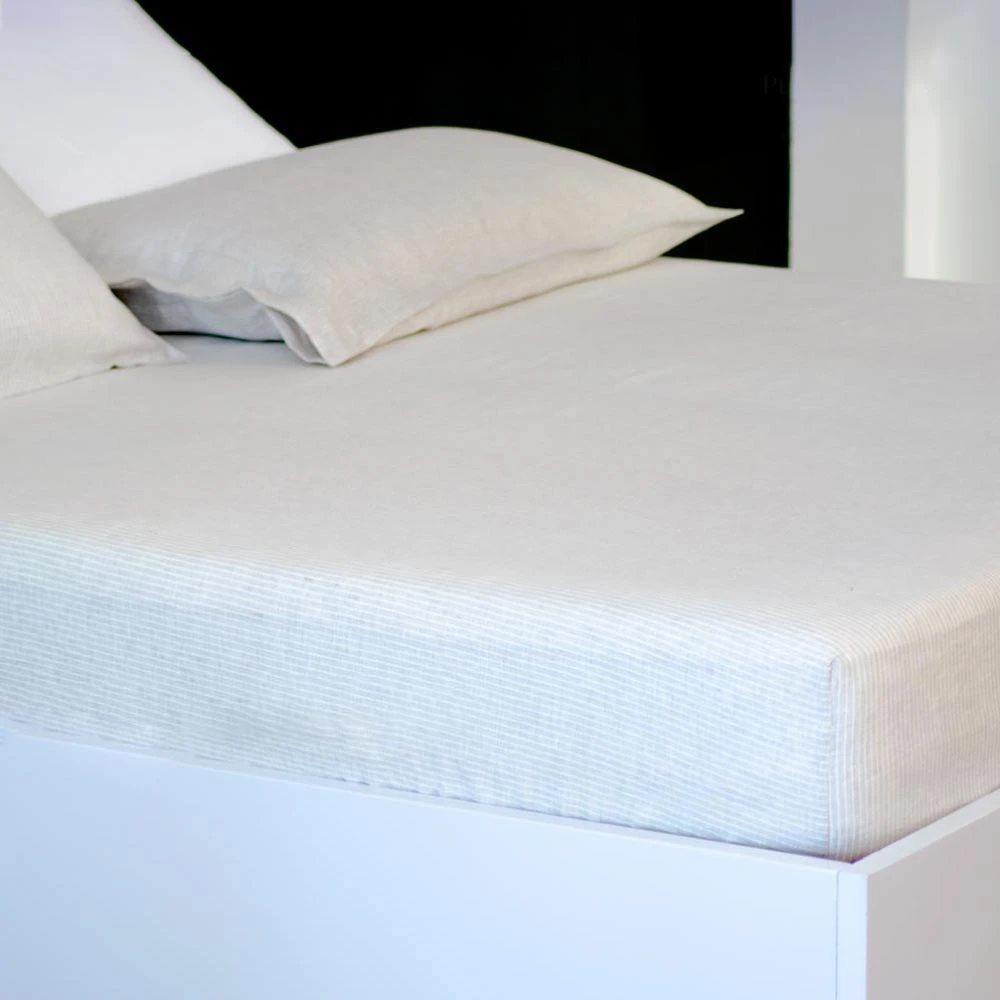 Lenzuola Sotto con Angoli - su Misura - Lino Tinto in Filo Rigato
