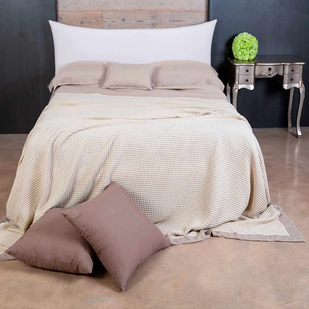 COPRILETTO 100% COTONE NIDO D'APE CON BORDO APPLICATO 100% LINO