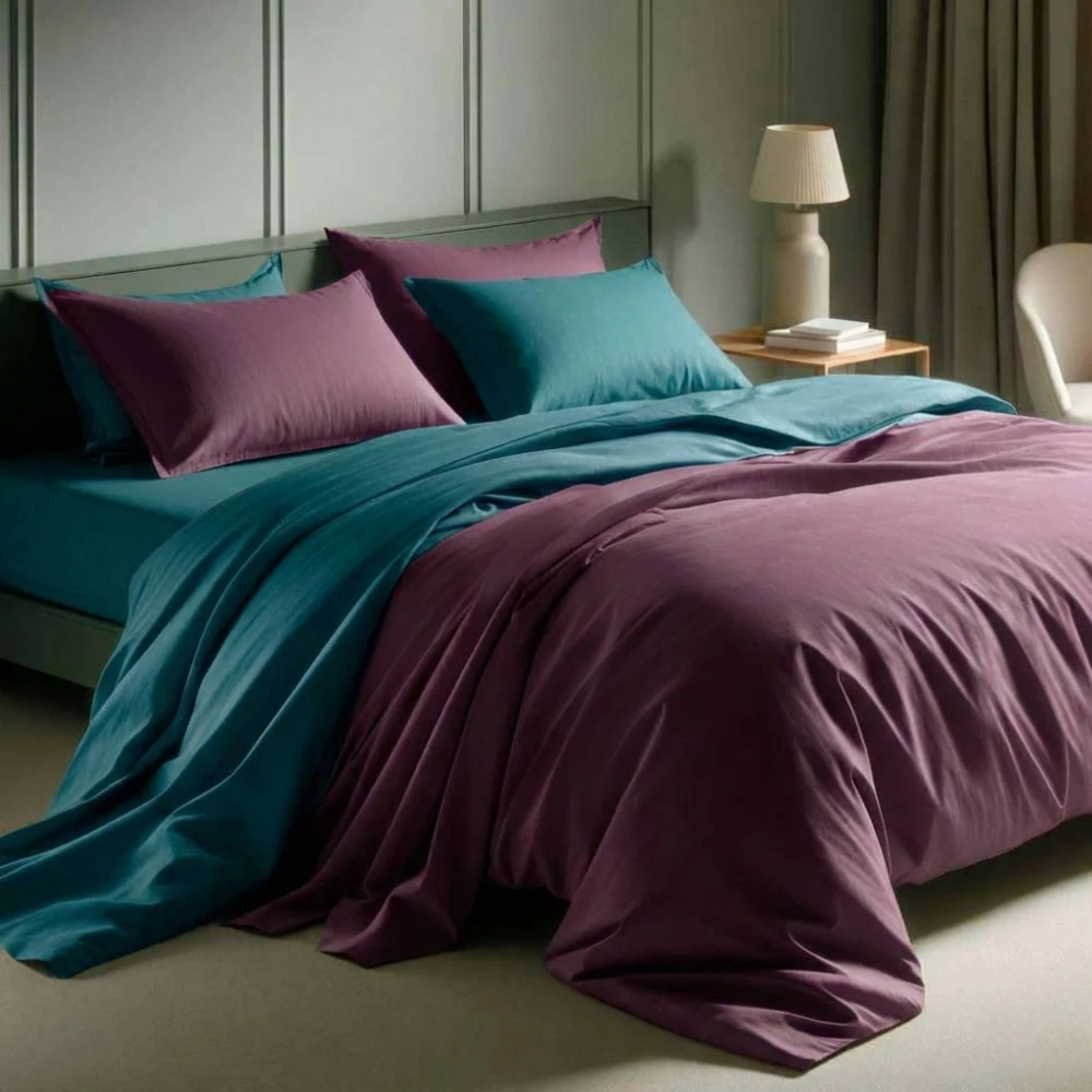 Outlet - Copripiumino Sfuso 275x225+50 Matrimoniale - con Patella Cotone TC150 17Sp Prugna - 27Sp Ottanio